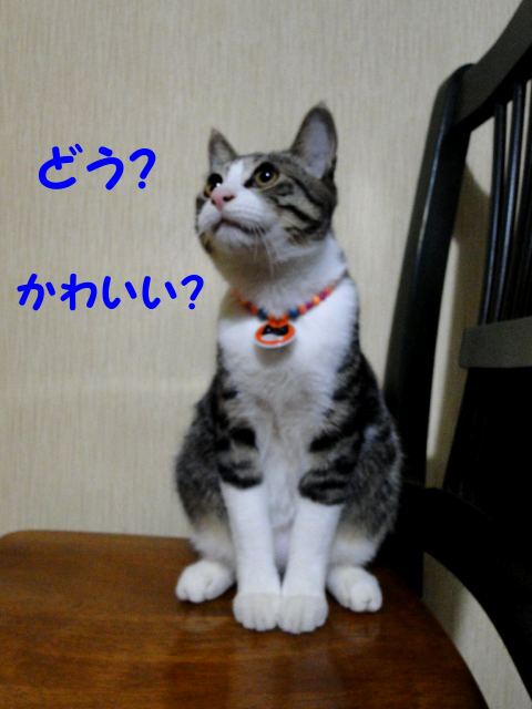 迷子札(チャーム)が気になったらしく