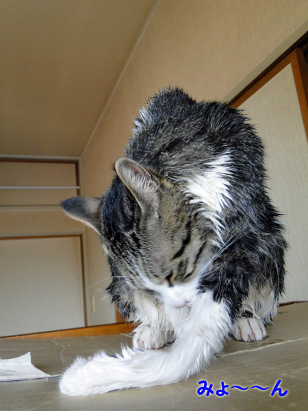 明日はタオルドライ後の「濡れ猫だいふく」をお送りする予定です^^
