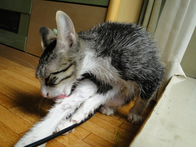 濡れちゃったにゃ・・・