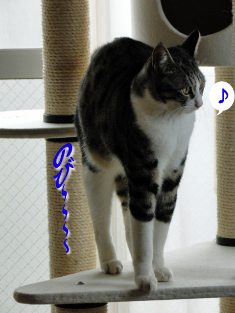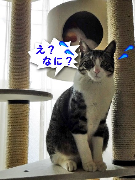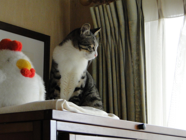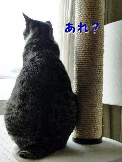 タワーからお外を見ようと駆けつけたお猫さまも ちょっと残念そうです。