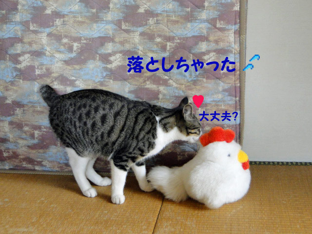 うっかりこっこを落としてしまったお猫さま。