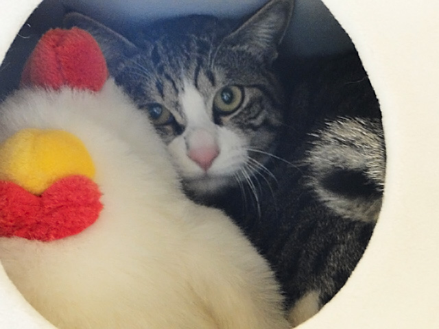 「こっこ。」とは我が家のお猫さま「だいふく」の 幼なじみ 「ニワトリ(♂)」のぬいぐるみです。