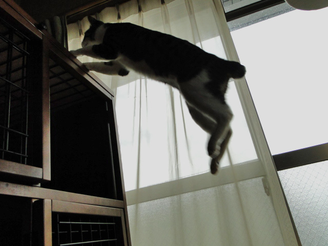 いつもより手前でスピードダウンし 慎重に登るお猫さま。