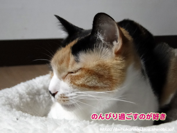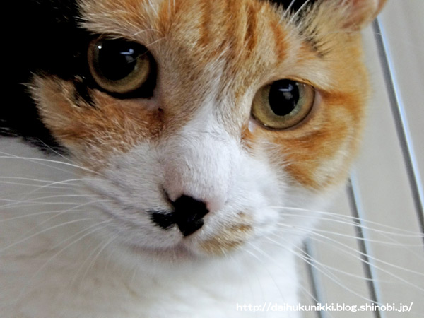 今日は猫部屋で口内炎治療中のため、なかなか登場機会の無い三毛猫あおいちゃんの紹介を^^