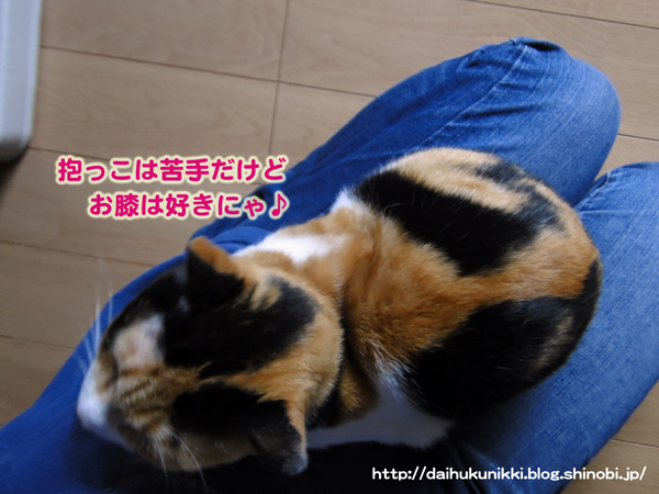 恐がりなので最初は警戒しますが、慣れれば自分からお膝に乗って来てくれます^^