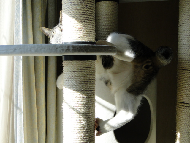 なんか、キャットタワーの使い方を間違えてない?(笑)