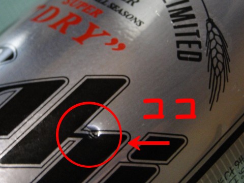 買い置きの缶ビール(500ml 未開封)に 歯で穴を開けてくれました。