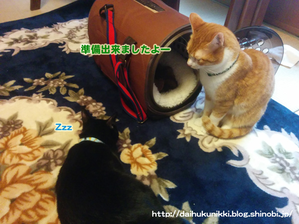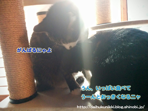 仲良しのにゃんまる君の励ましを受け
