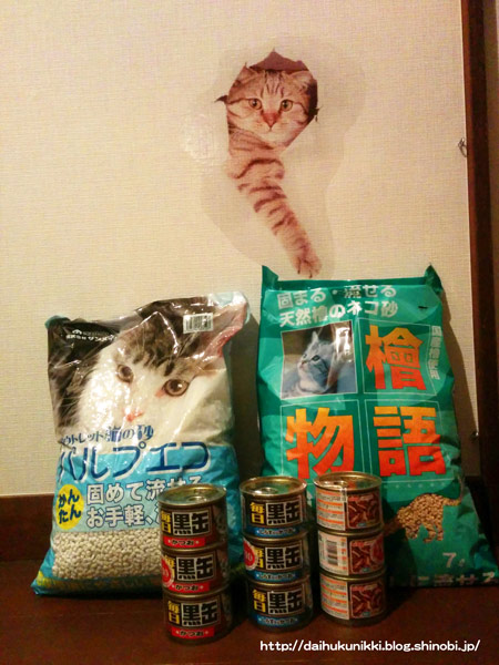 猫砂と猫缶を頂きました。