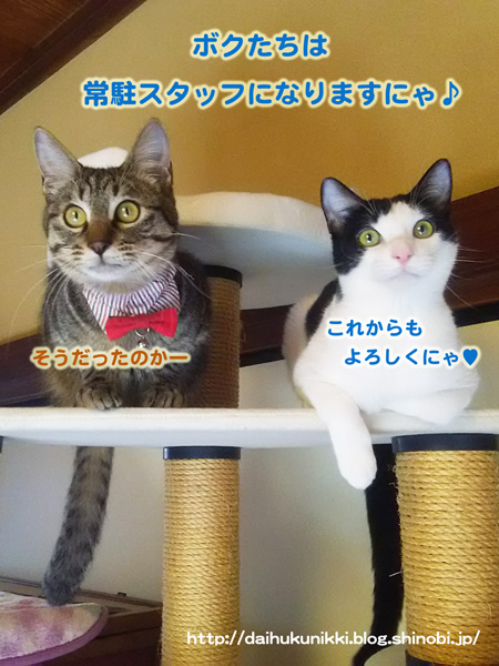 よもぎ君とはく君、ふたり揃ってうちの子(常駐スタッフ)になりました。