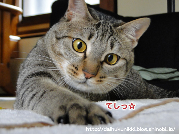 おもちゃ箱をガサガサ漁っていたので、じゃらしタイムに。