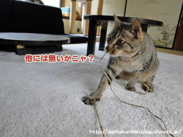 ひもを一本咥えてるのに、もう一本もしっかり捕まえるという強欲さも発揮w
