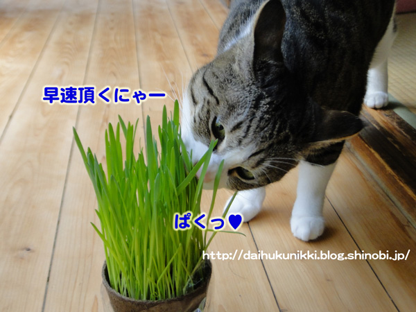 すあまちゃんも猫草が気に入ってくれたようです^^
