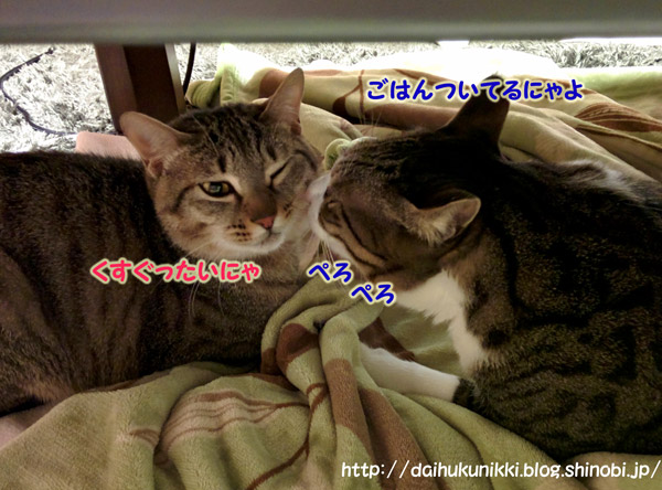 今日も座卓の下には和菓子兄弟の猫団子が出現(*^^*)