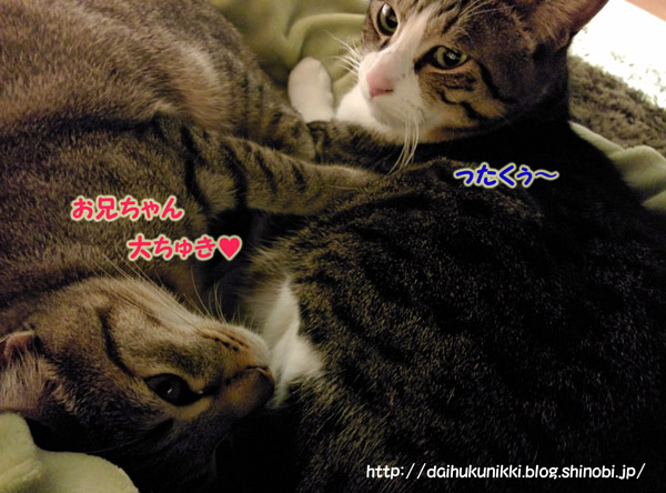(分かりにくいですが、だいふく君のオチリがすあまちゃんの背中とくっついています^^)