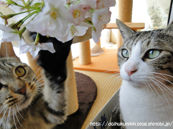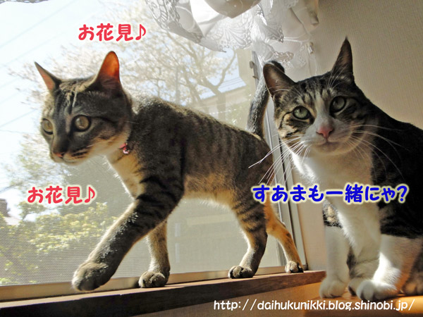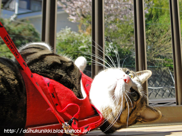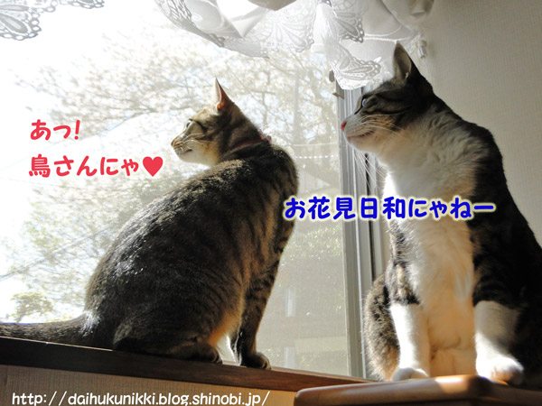 窓際警備隊のだいふく&すあまも窓際警備をしながら春を楽しんでいます。
