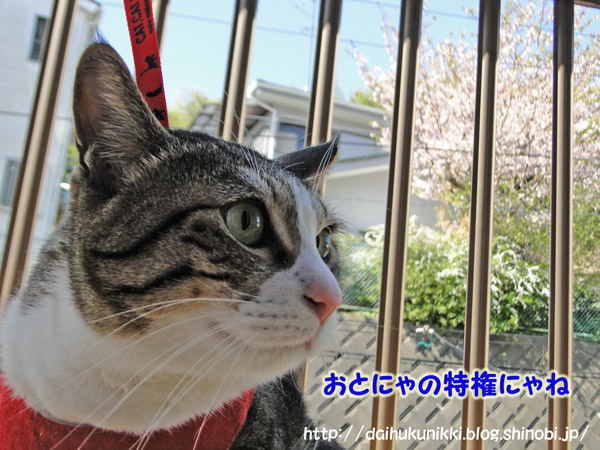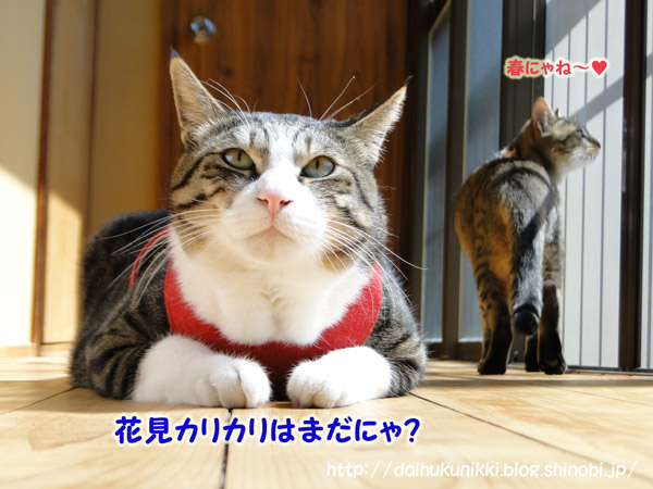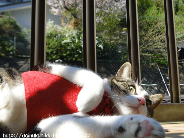 景色や桜には興味を示さず、のんびりごろごろとひなたぼっこを楽しむだいふく君w
