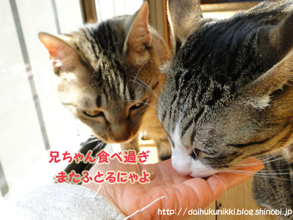 その時、だいふく君は、黒猫さんそっちのけで すあまの心配。