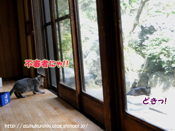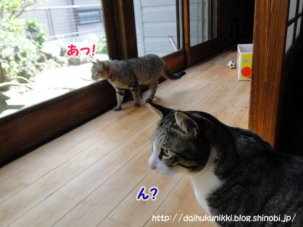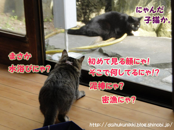 やっと黒猫の存在に気付いたらしいニブちんだいふくと、