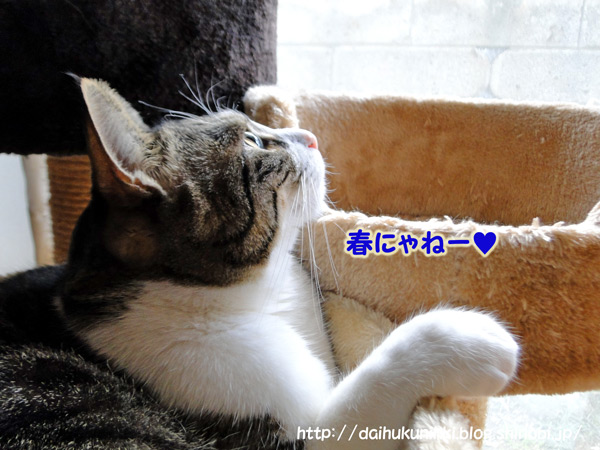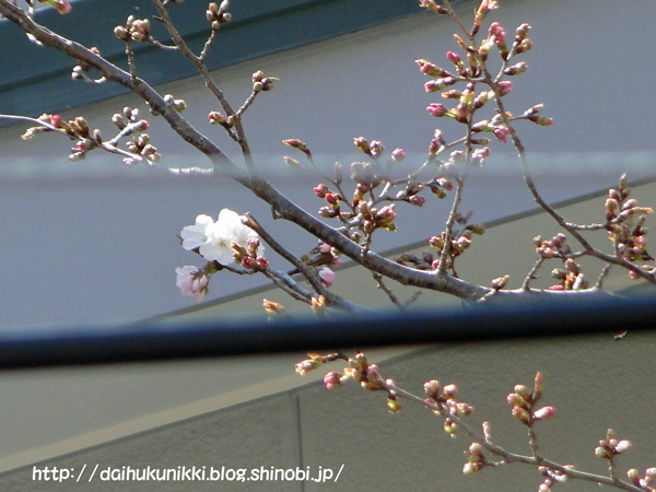 だいふく君は1Fのタワーから咲き始めたばかりの桜を見ながら のーんびり^^