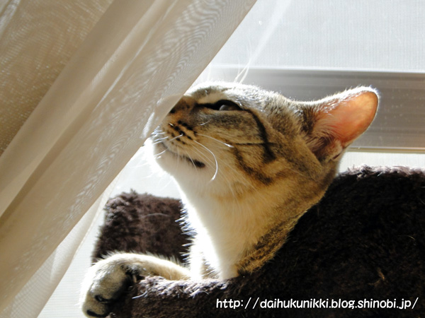 なにかを見つけたらしい窓際警備隊のだいふく&すあま。