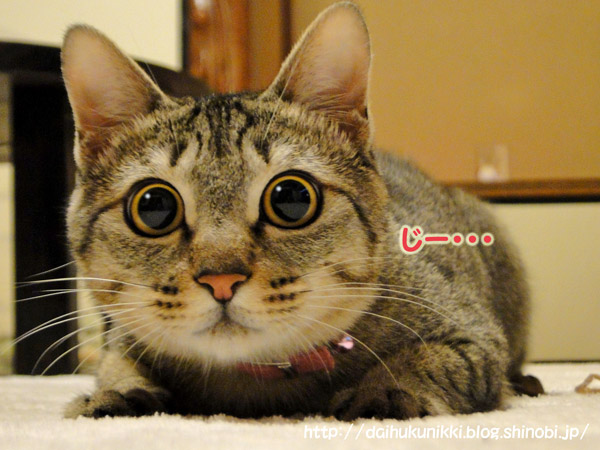 目を合わせることに何の抵抗もないだいふく君でしたが、