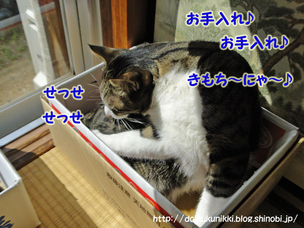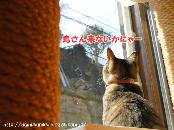 我が家の和菓子兄弟は、窓際で日向ぼっこしながらのんびり風見物(何それw)