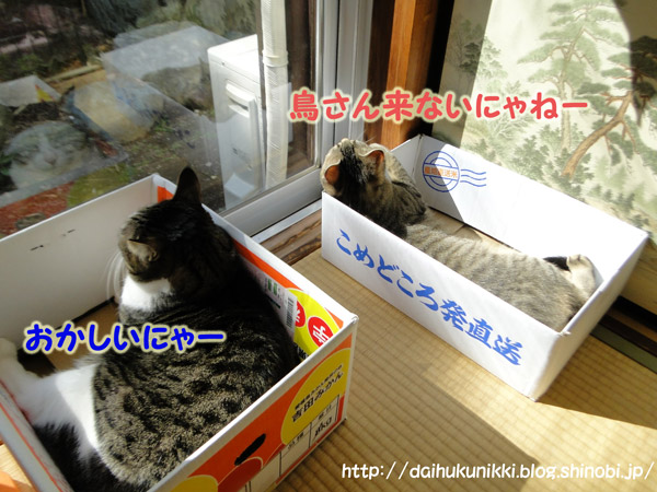 2にゃんが張り込む窓際に来る鳥さんはいないと思うw