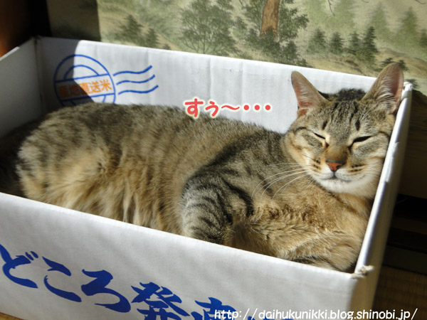 ポカポカひだまりの箱の中でじっとするすあまちゃん・・・