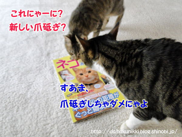 表紙を撮影していると、呼んでないのにわらわらと寄ってくるヤジ猫達w