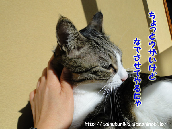 たっぷり日差しを浴びて ぽかぽかになった だいふく君を撫でたら