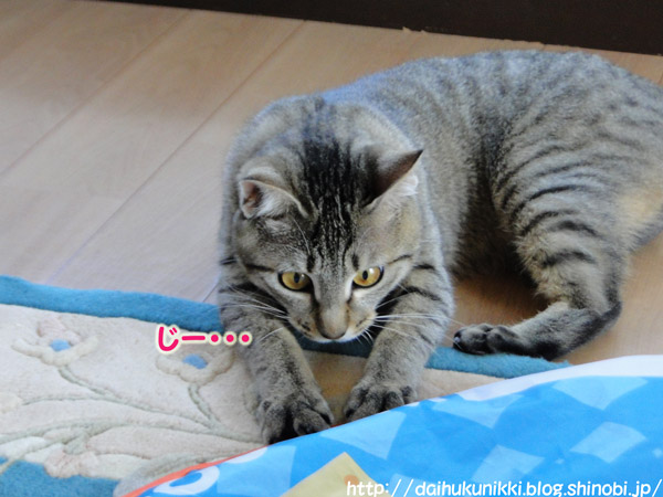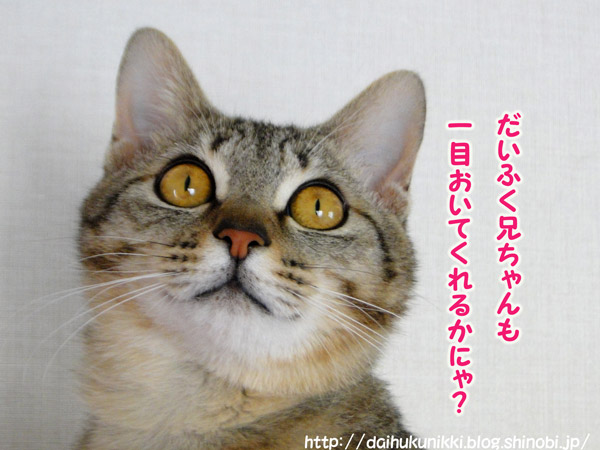おとニャ猫だいふく兄ちゃんの反応はいまいちでしたが(警戒して遠巻きに見てるだけw)