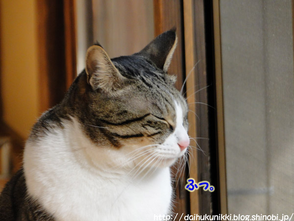 窓際警備をしていた だいふく君も警備そっちのけで毛繕いに夢中^m^