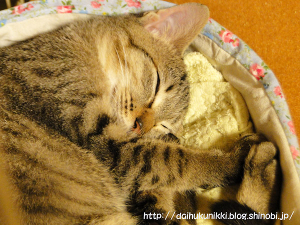 ゴハンも最低限しか食べず(だいふくの分を奪わないって意味ねw)すやすや寝ていました。