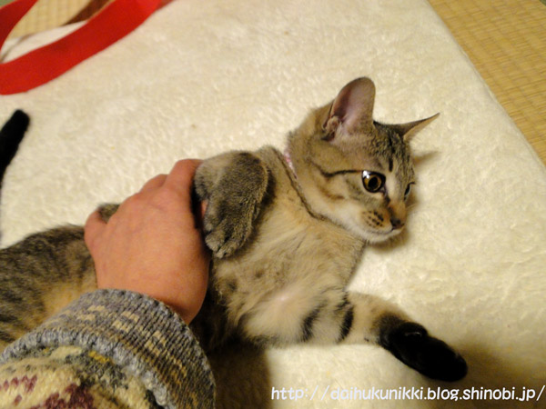 だいふく君の時は仔猫用の安全首輪で練習したのですが、