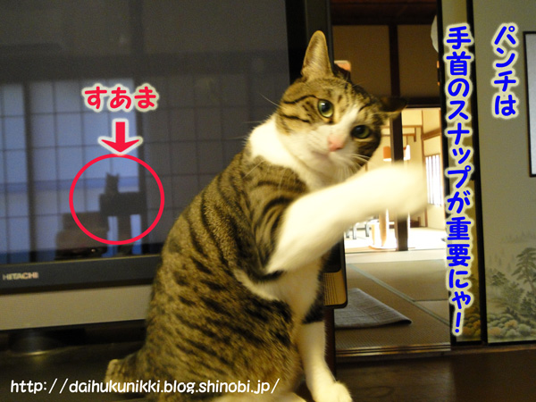 だいふく兄ちゃん、すあまちゃんにネコパンチの指南w