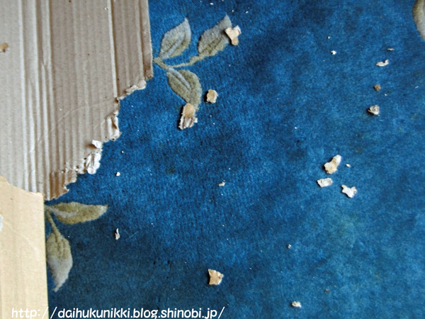 最近、朝になるとネコ部屋の床一面に段ボールの細かい欠片が散乱してるのよねぇ。。。