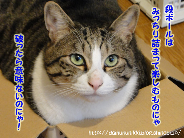 ってか、段ボール箱命のだいふく君が段ボールをちぎって遊ぶなんてありえないよねー^^