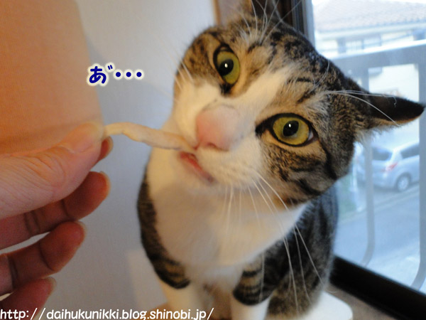 猫の前歯ってすんごい小っちゃいけど、ちゃーんと使えるんですね~(おいおいw)