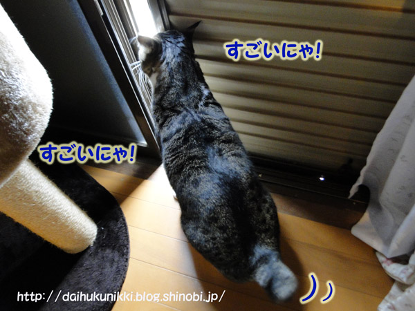 ヤジ猫だいふく君が窓際を離れてくれなくて・・・