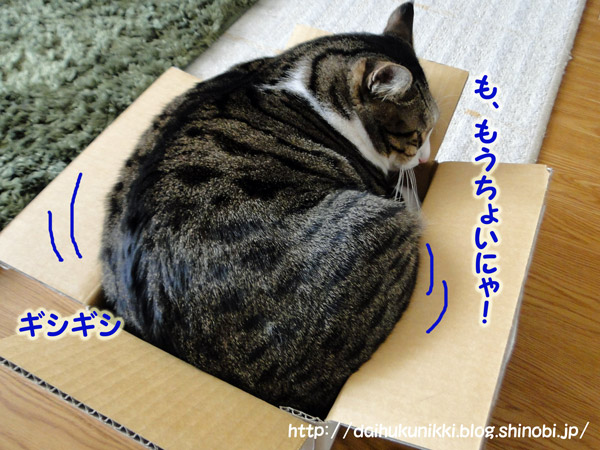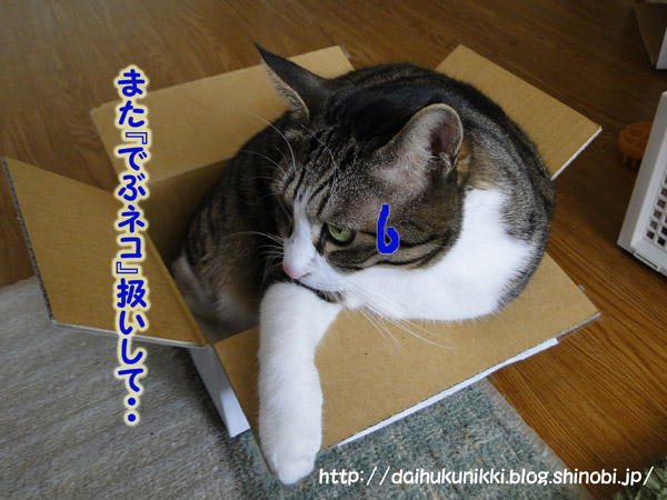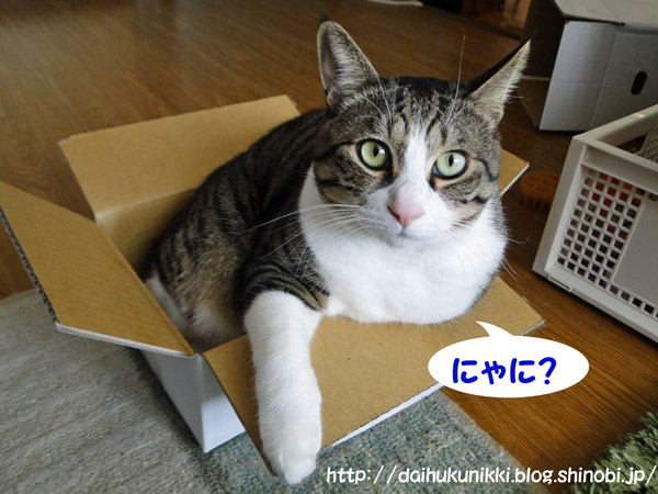 その箱、だいふく君には 少し小さすぎるんじゃ?(笑)