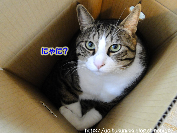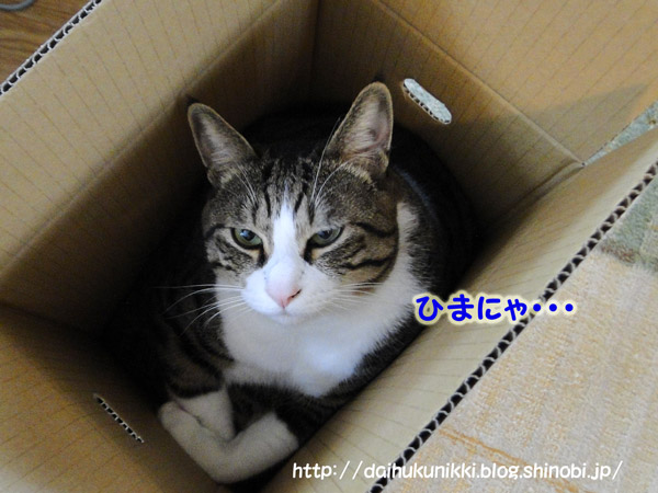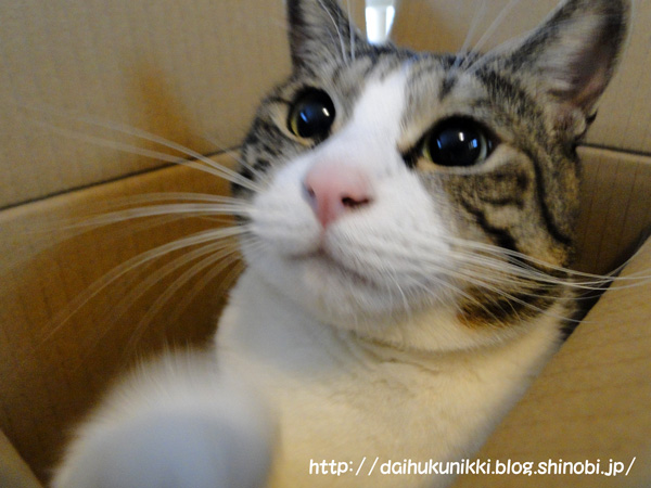 ふと箱の中を覗くとだいふく君が暇そうにしていたw