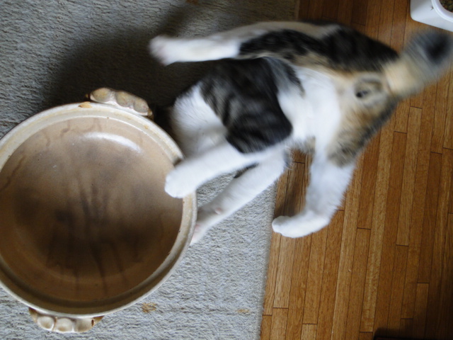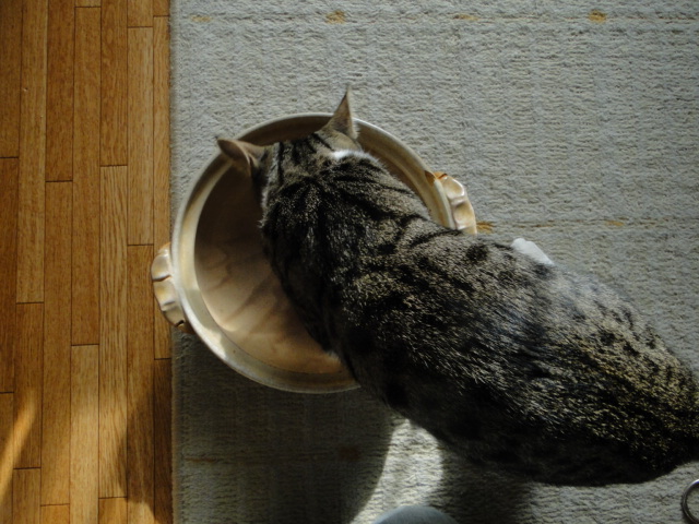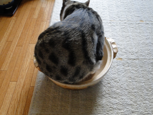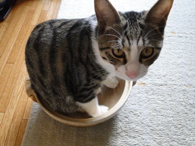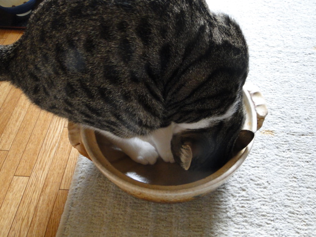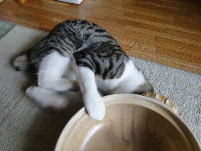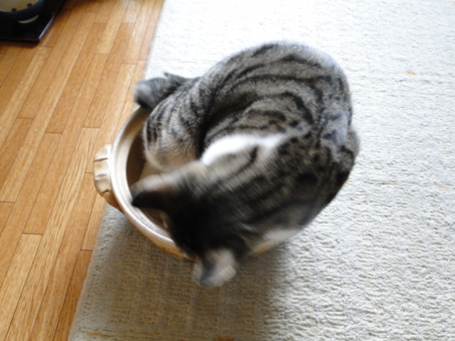 クールベッド代わりに 夏の間は土鍋に入り続けた だいふくさん。