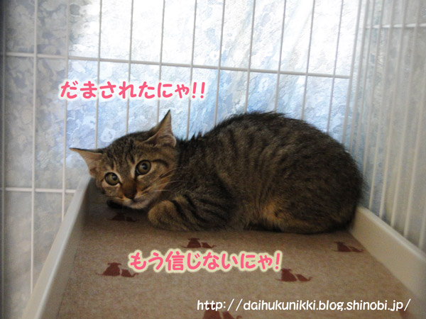 でもある意味【だました】は間違ってないかも?(笑)←猫なで声で抱っこし、降ろすふりしてキャリーに詰め込むヒトw