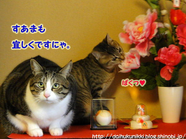 だいふくくんとすあまちゃんのご挨拶に良いお正月を迎えられました。