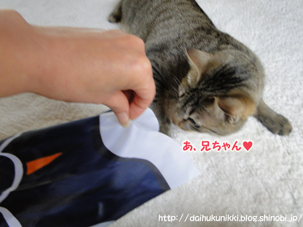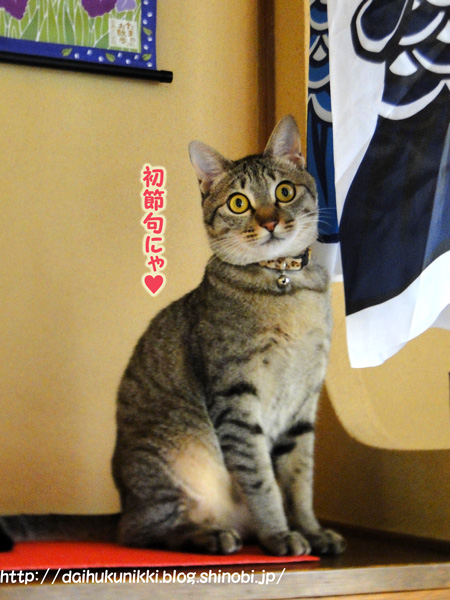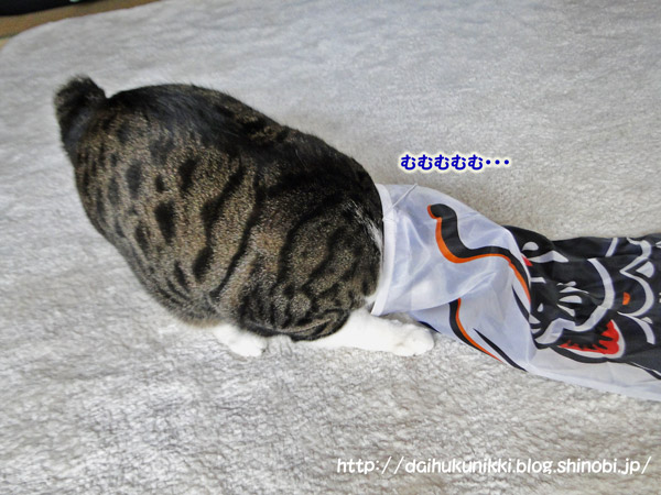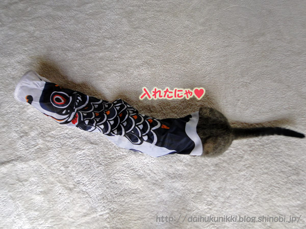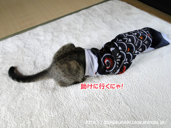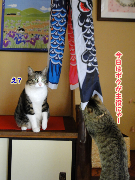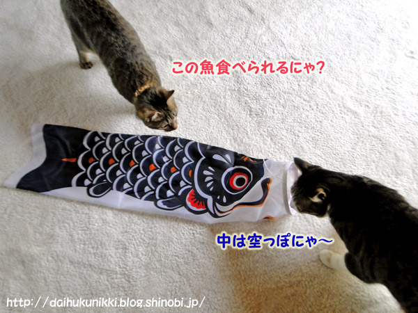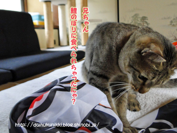鯉のぼりに、だいふく兄ちゃんが食べられちゃったと思って、救出に向かったのね~(笑)