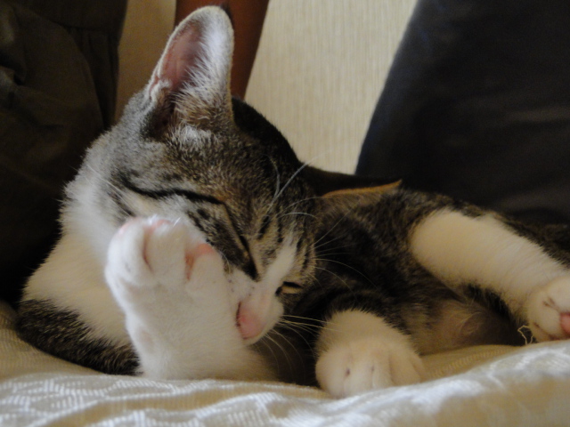 爪切らせてくれていい子ちゃんなのに、肉球、爪をカジカジ?