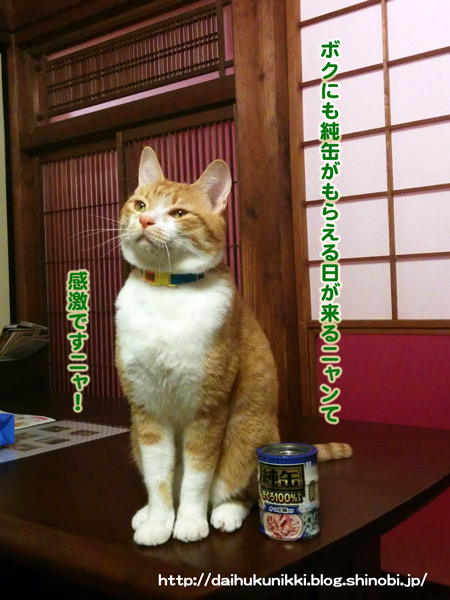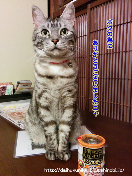 はやて君もゆうぼんママさんから猫缶頂きました。
