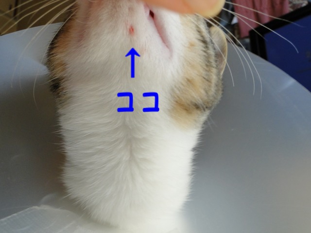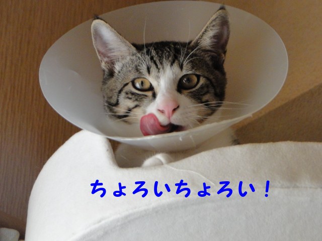 その後、傷口(術跡)を舐めようとして、傷口にパラボラの角が当たり、