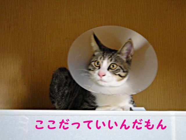 だいふくちゃん、パラボラ猫になっちゃったのね^^;;